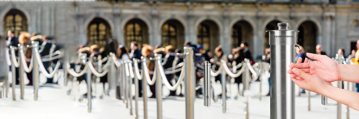 Spread-Stop® VARIO, DEPOT und MOBIL: Stehende Desinfektionsspender/ Händedesinfektionsspender für Markplätze, Events, Gastronomie/Restaurants, Schulen/Universitäten, Sportveranstaltungen, Fussballstadien, Konzerte, Ämter, Unternehmen, Firmen, Super-und Baumärkte, Spielplätze, Einkaufszentren, Feste, Hotels, Haltestellen, Läden, Bäckereien u.v.m